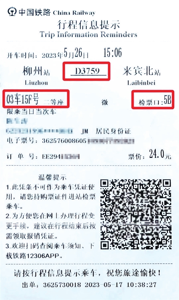 对此,国铁郑州局工作人员介绍,如需查看出行信息,可在自助售票机上点击“行程信息提示”,打印出一张纸质行程单,上面会清楚标明车次、发车时间、座位号和检票口等信息,方便旅客查看。