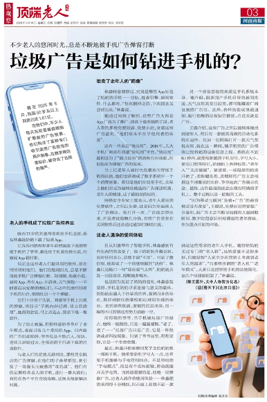 当上亿老年人被时代浪潮推向智能手机的洪流,他们也拼凑成了数字系统中一个个消费画像。看似是他们在使用手机,实际上他们却成为被精准挑选的广告阅读机器,老年人的便捷,成了被拍卖的标的。