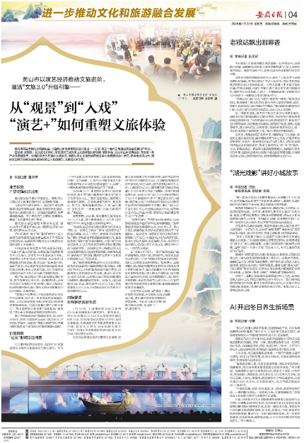 “旅游演艺已经成为延长营业时间的有力手段,在一定程度上解决了游客‘夜间玩什么’的痛点问题,形成‘日赏景,夜观演’的深度体验。”黄山学院旅游学院教授张俊香认为,旅游演艺除了延伸“游”的时间跨度、丰富“游”的内容层次外,还成为传统景区转型升级的重要路径与创新引擎。“旅游演艺可以将静态的历史文化资源转化为动态的体验场景,突破传统景区‘静态展示’的局限,重新定义游客与文化遗产的连接方式。”张俊香说。