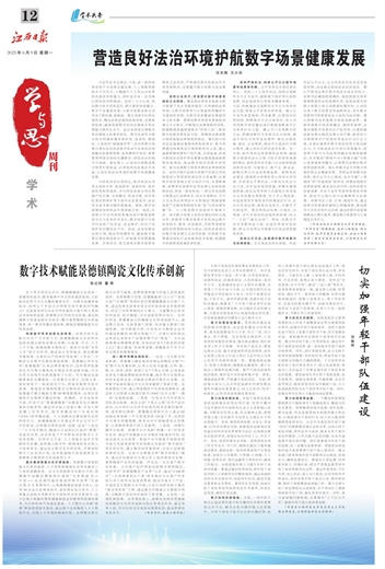 统一数字传播治理标准。一是统一文化数字传承标准。景德镇古陶瓷基因库制定的陶瓷文物“7+X”数字化采集标准,以考古信息为基础,从形、胎、釉、彩、纹饰、底款、装烧工艺7个核心方面,以及包括世界各大陶瓷博物馆同类收藏、海外考古发现等在内的X延展信息,对陶瓷文物进行数字化采集。这种数字标准的建设为文化传承提供了基准尺度。在质量管控方面,建立网络陶瓷产品质量追溯体系,通过植入近距离无线通信技术(NFC)芯片实现“一物一码”全流程追溯。二是统一传统文化当代呈现与国际表达标准。故宫文创“千里江山图”系列产品的成功,启示我们文化符号的现代转译需要把握形、神、意的转化规律。景德镇在网络平台上通过3D动画还原高岭土开采到成瓷的128道工序,这种技术可视化传播策略,使受众对中国陶瓷的认知维度,从器物欣赏提升到工艺敬畏。三是统一网络传播平台标准。传播平台应突破“两微一抖”的同质化竞争,通过开发陶瓷文化专属的VR体验空间,创造沉浸式文化场景。数据平台可借鉴中国国家图书馆与英国国家图书馆等联合发起的“数字敦煌”项目的经验,建立陶瓷纹样基因库,为设计创新提供素材支持。电商平台需要完善“数字供销社”模式,通过区块链技术实现从匠人到消费者的直联,重塑陶瓷产业的价值链。四是统一文化遗产数字化标准。文化遗产保护需要创新数字赓续路径,如拼多多“景德镇陶瓷产业带”专区,通过“C2M模式” (从消费者到生产者)使非物质文化遗产代表性传承人的作品直连消费者,推动当地手工产业、非遗技艺实现数字化升级;大足石刻研究院实施的“数字资料库”工程,通过激光扫描建立文物数字档案,为陶瓷古窑址保护提供了新思路。五是统一管理机制标准。在管理机制上,要继续发挥好景德镇国家陶瓷文化传承创新试验区管委会作用,通过领导小组、专项办和项目组协同管理机制,提高管理效率和水平。(作者单位:南昌工程学院)