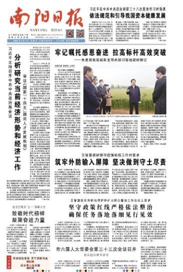 【南阳日报简介】《南阳日报》创刊于1949年3月22日,是南阳市委的机关报,《南阳日报》是河南省创刊较早的地方报。《南阳日报》与时俱进,已连续八年四届被评为河南省“一级报纸”。把党报的指导性、知识性、趣味性、可读性有机结合在一起,赢得读者的广泛赞誉,大大提高了《南阳日报》的自费市场占有率,《南阳日报》稳定发行量达14万多份,其中中心城市近5万份,日阅读人数达56万人次以上,跻身全国同类报纸前十名,在本市纸质媒体中遥遥领先,成为本市当之无愧的主流媒体、强势媒体。
