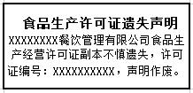 XXXXXXXX餐饮管理有限公司食品生产经营许可证副本不慎遗失,许可证编号:XXXXXXXXXX,声明作废。